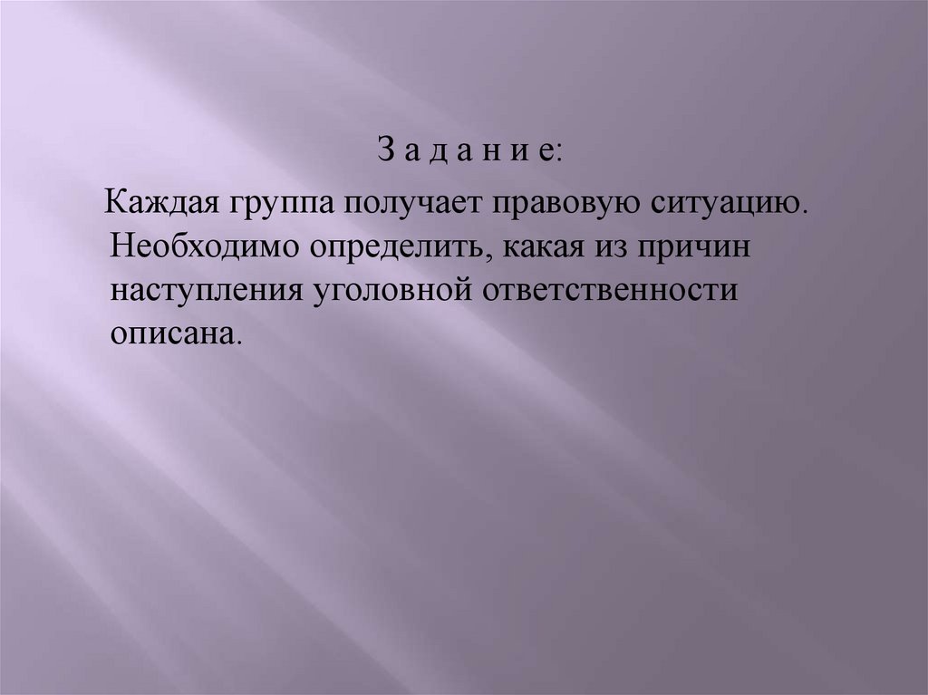 З а д а н и е:Каждая группа получает правовую ситуацию.