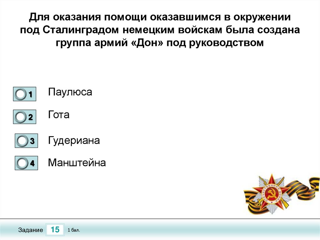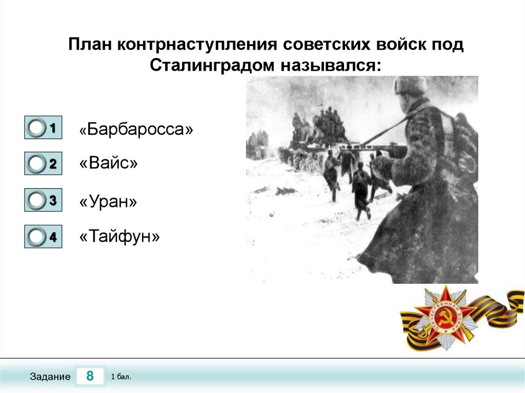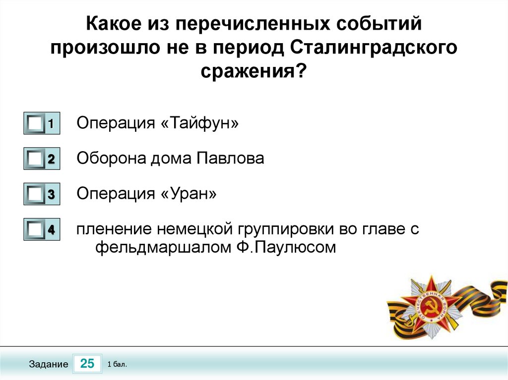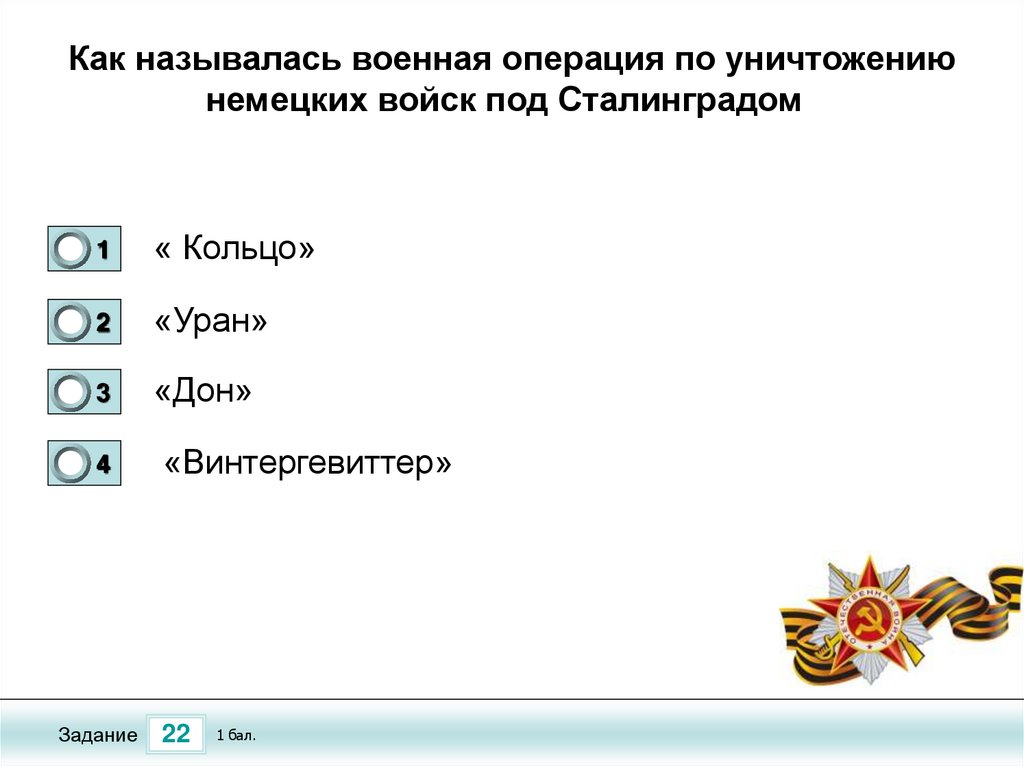 Тест по теме «Сталинградская Битва»