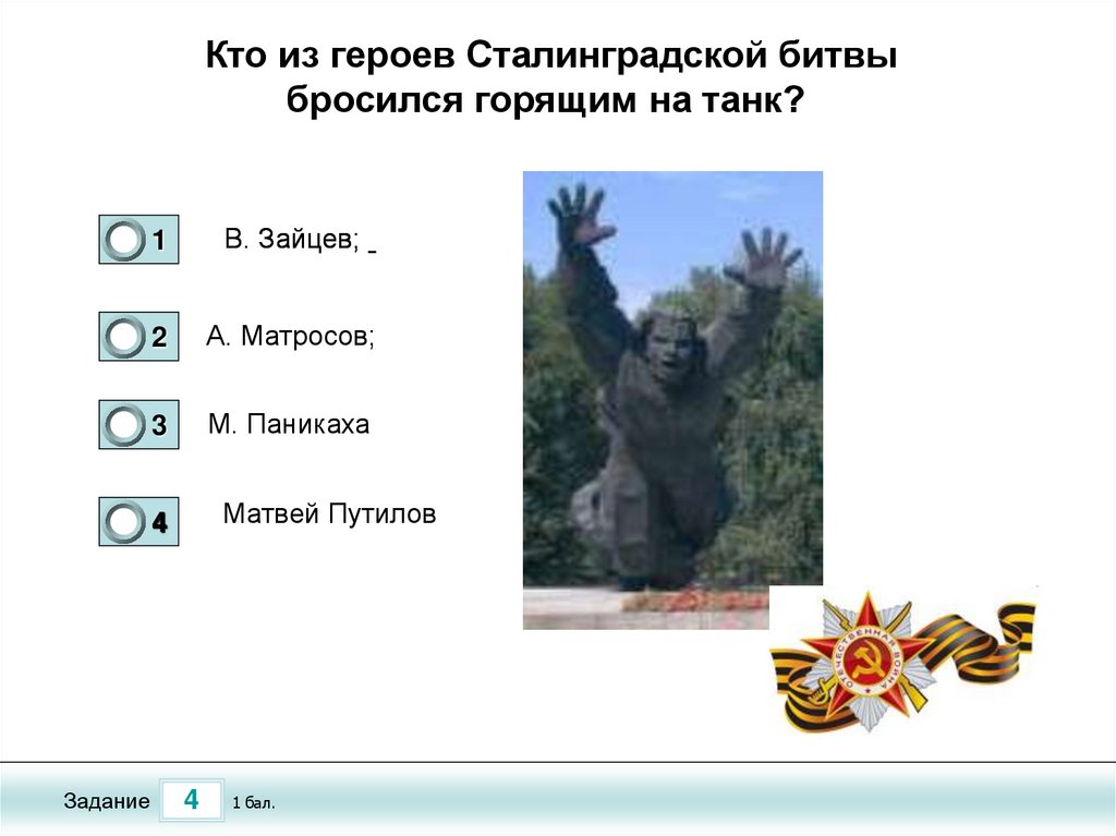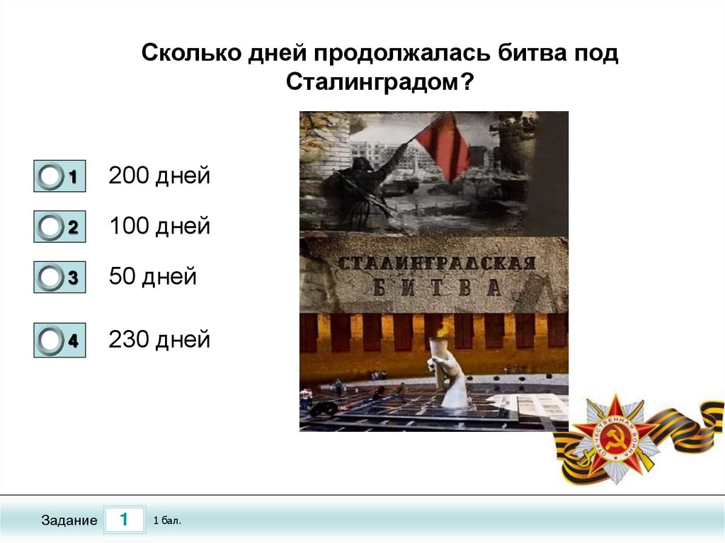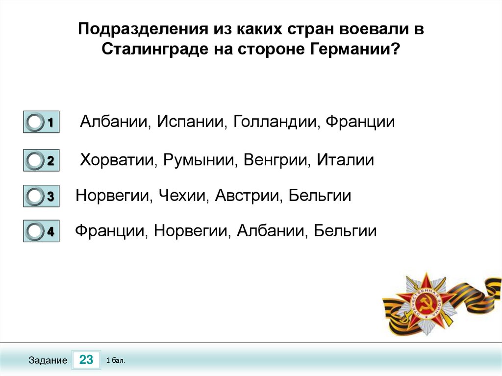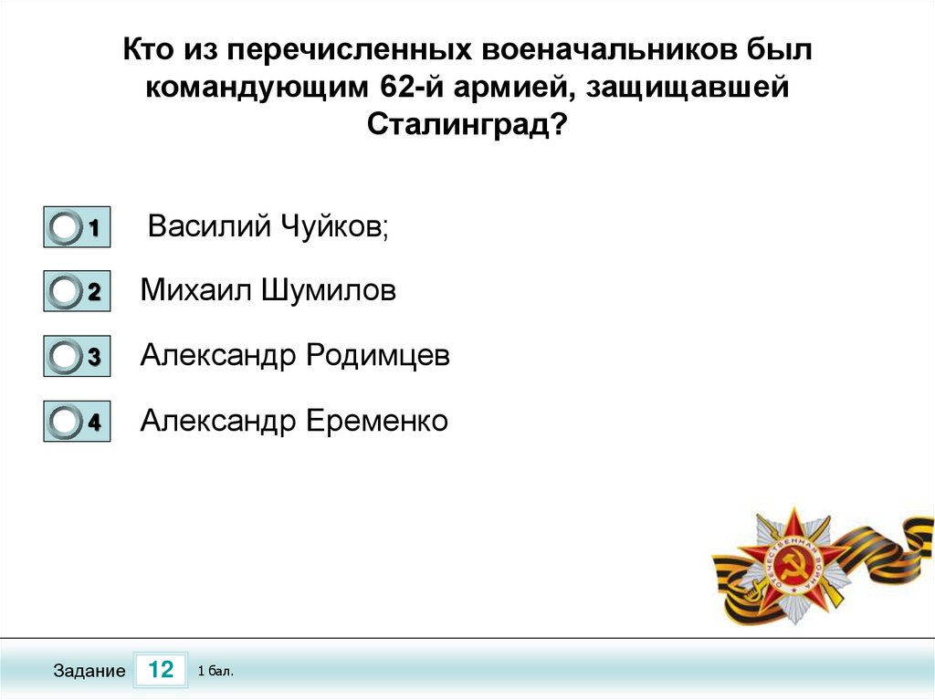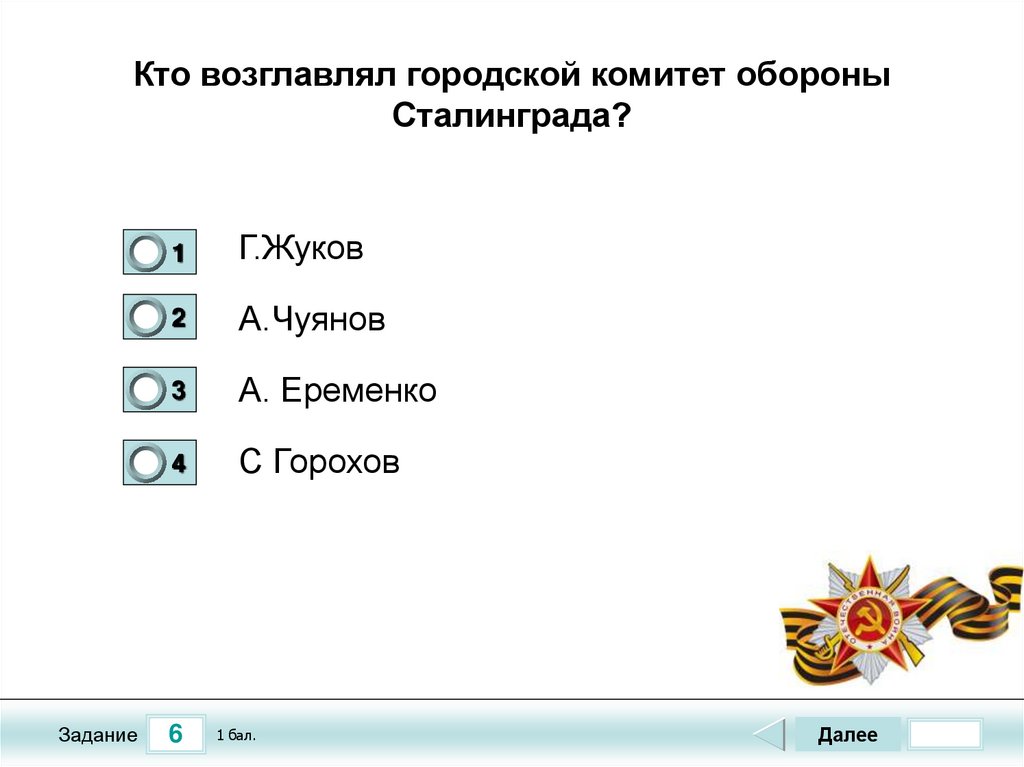Тест по теме «Сталинградская Битва»