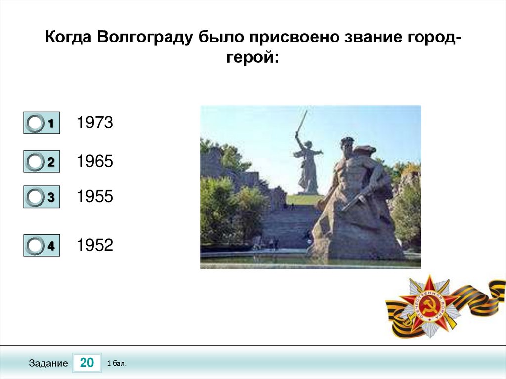 Когда Волгограду было присвоено звание городгерой:0