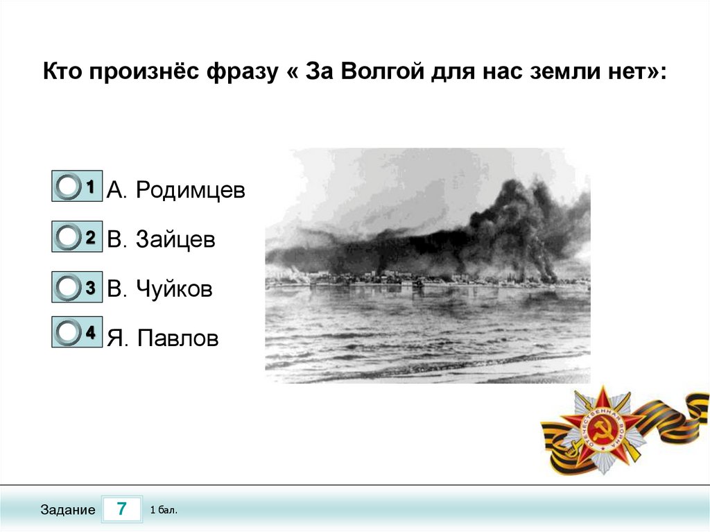 Кто произнёс фразу « За Волгой для нас земли нет»:0