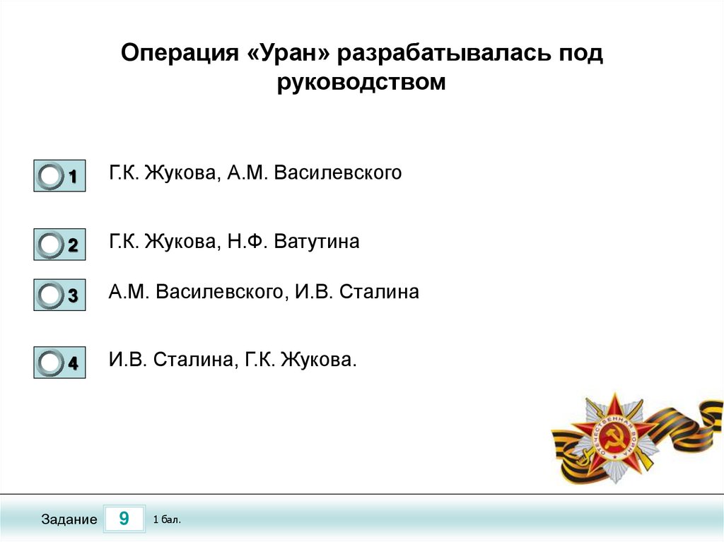 И.В. Сталина, Г.К. Жукова.