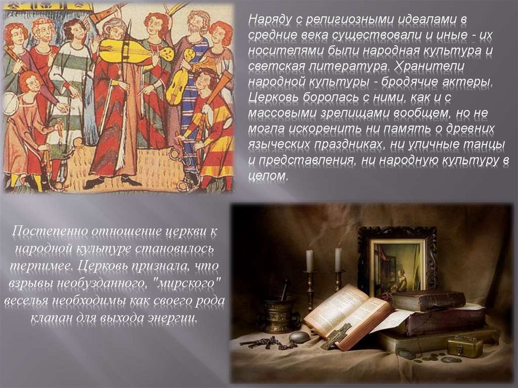 Наряду с религиозными идеалами всредние века существовали и иные - их