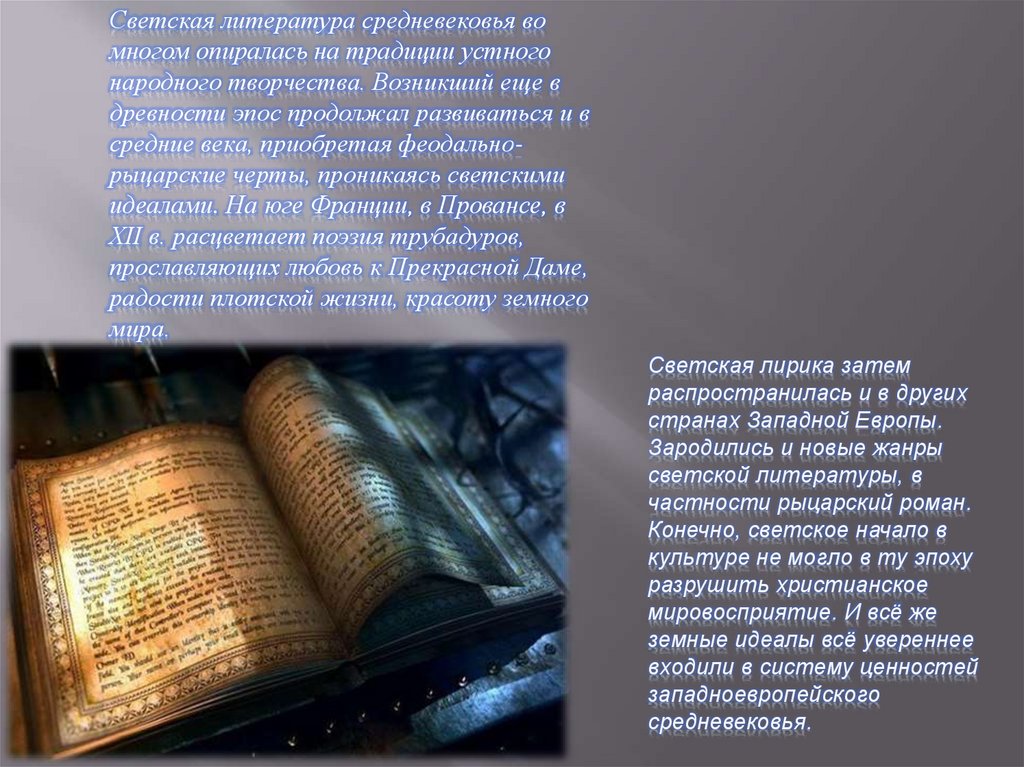 Светская литература средневековья вомногом опиралась на традиции устного
