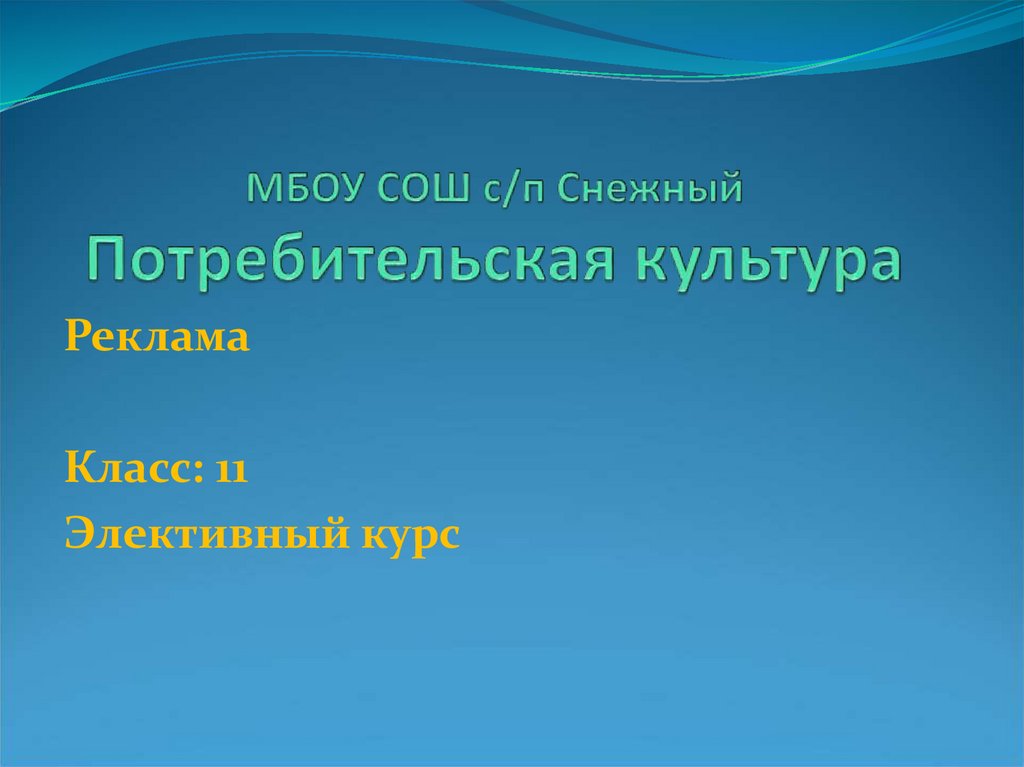 1. МБОУ СОШ с/п Снежный Потребительская культура