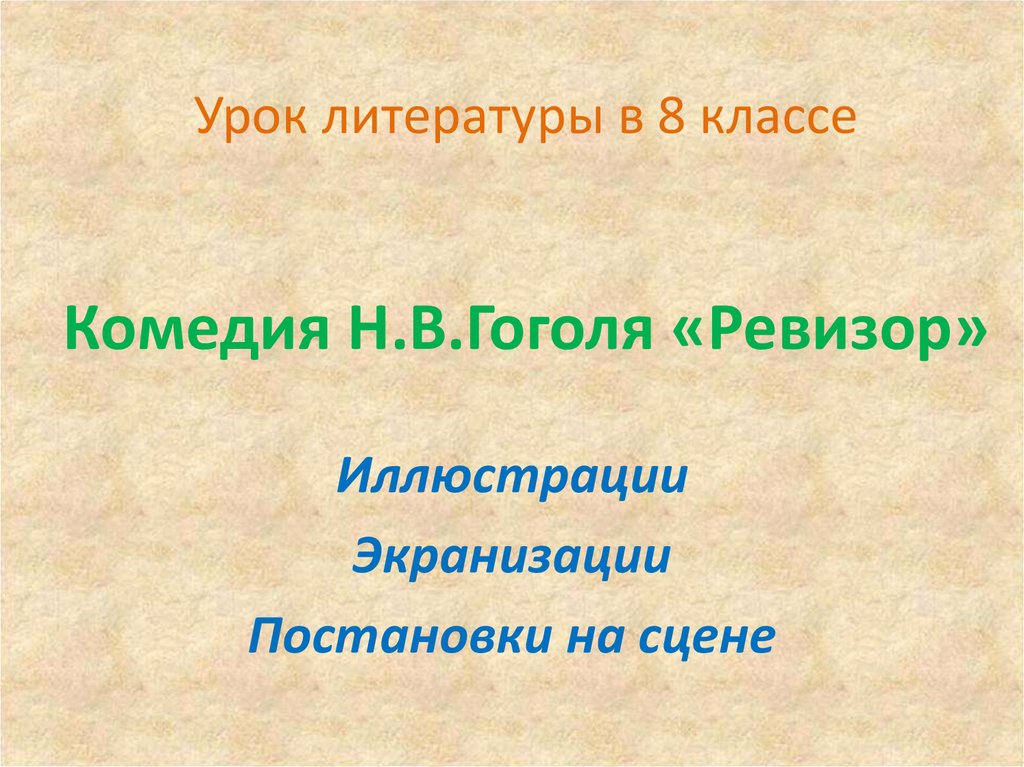 1. Урок литературы в 8 классе Комедия Н.В.Гоголя «Ревизор»