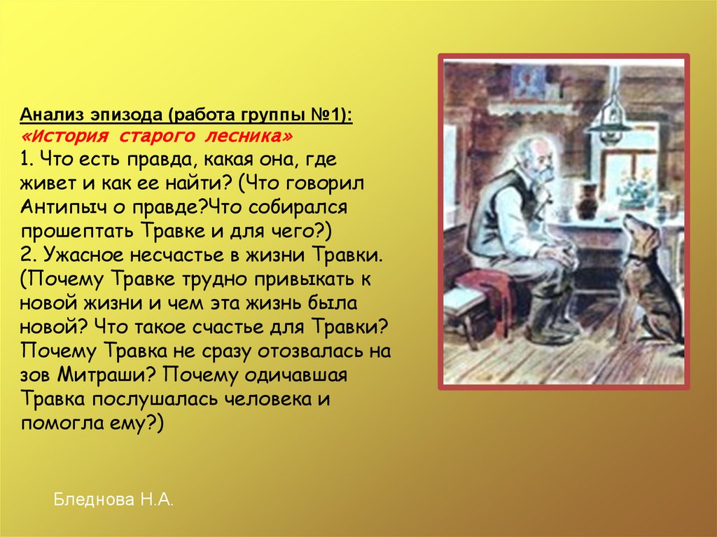 Анализ эпизода (работа группы №1):«История старого лесника»