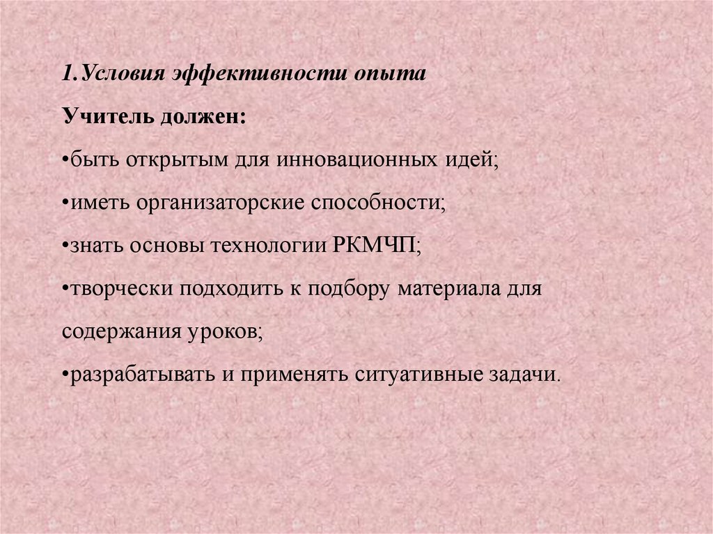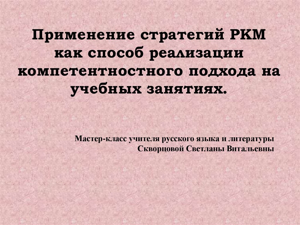 Применение стратегий РКМ как способ реализации компетентностного подхода на учебных занятиях