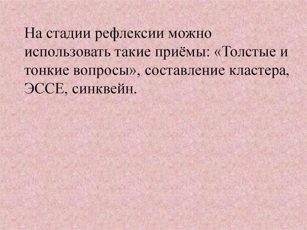 На стадии рефлексии можноиспользовать такие приёмы: «Толстые и