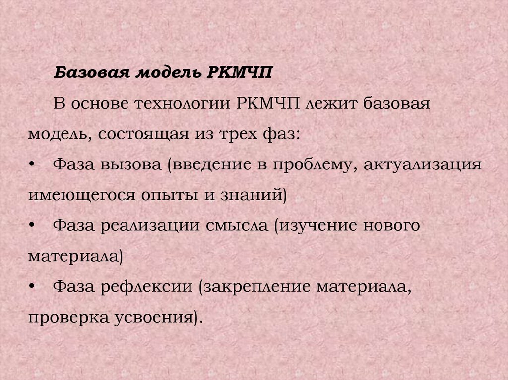 Базовая модель РКМЧПВ основе технологии РКМЧП лежит базовая