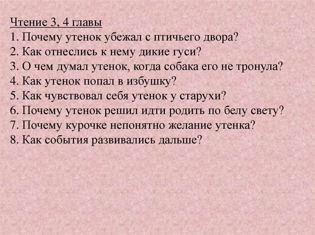 Чтение 3, 4 главы1. Почему утенок убежал с птичьего двора?