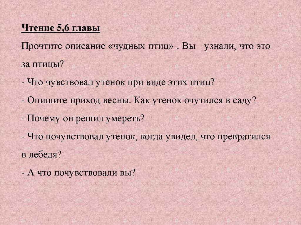 Чтение 5,6 главыПрочтите описание «чудных птиц» . Вы узнали, что это