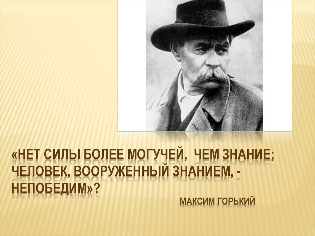 «НЕТ СИЛЫ БОЛЕЕ МОГУЧЕЙ, ЧЕМ ЗНАНИЕ;ЧЕЛОВЕК, ВООРУЖЕННЫЙ ЗНАНИЕМ, НЕПОБЕДИМ»?