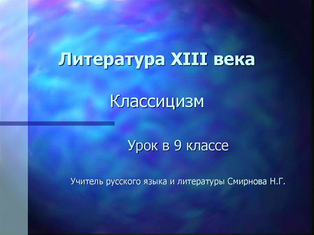 Литература ХIII века. Классицизм. Урок в 9 классе