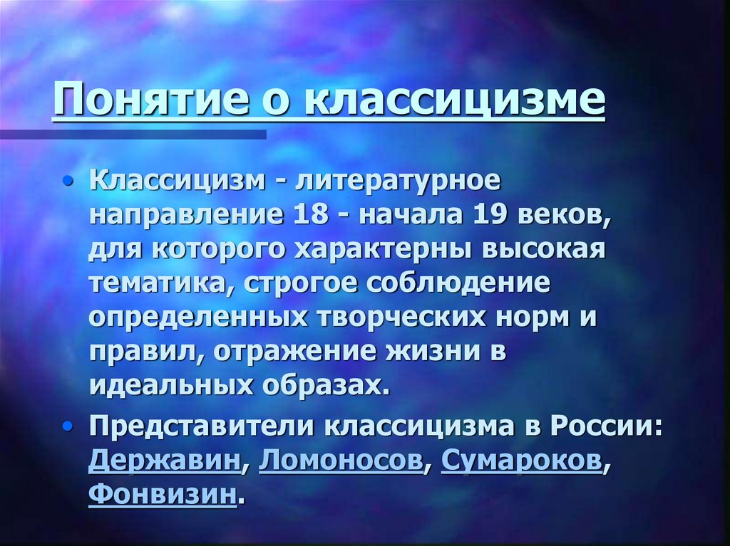 Понятие о классицизме• Классицизм - литературное
