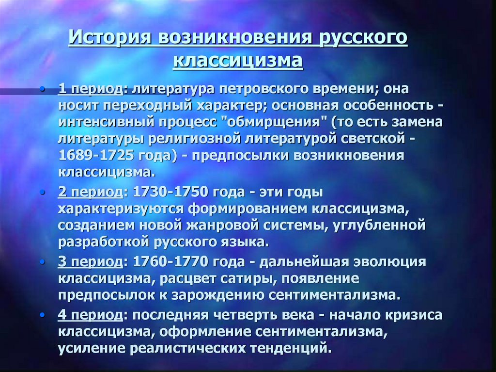 История возникновения русскогоклассицизма