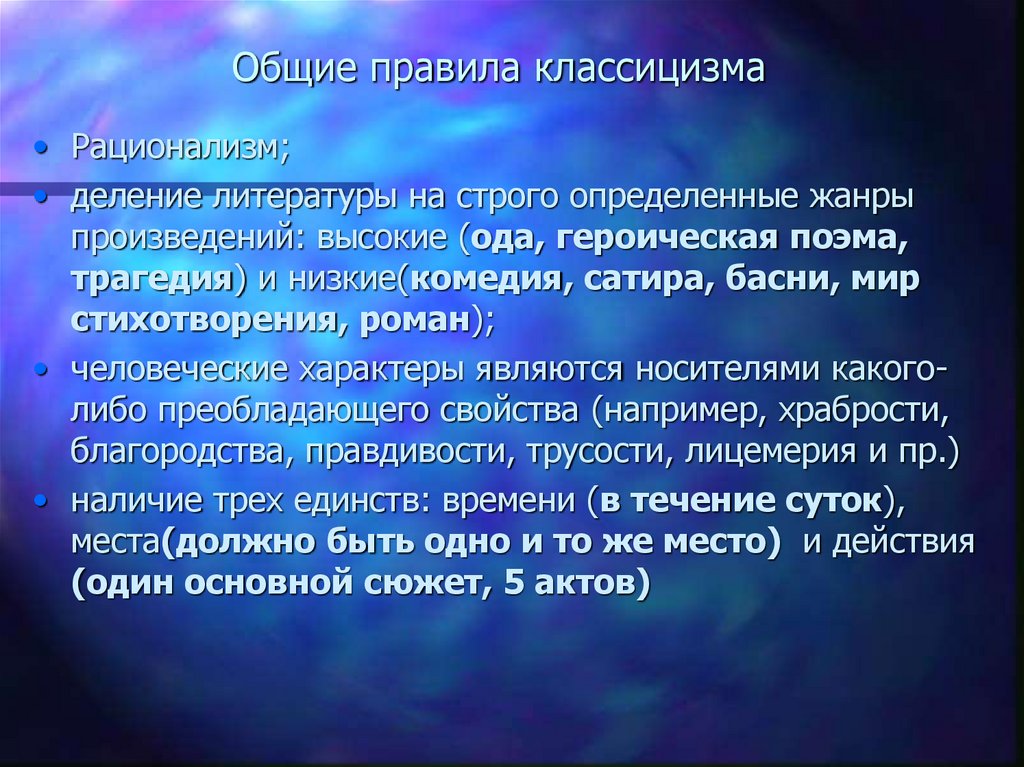 • Общие правила классицизма