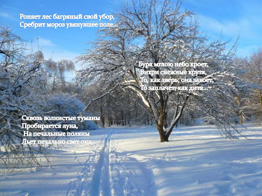 Роняет лес багряный свой убор,Сребрит мороз увянувшее поле...