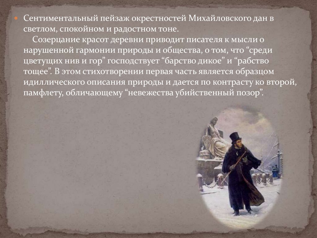 цветущих нив и гор” господствует “барство дикое” и “рабство