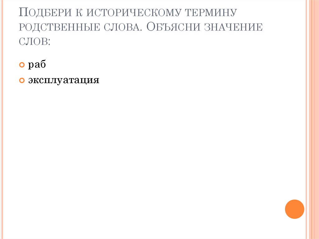 ПОДБЕРИ К ИСТОРИЧЕСКОМУ ТЕРМИНУРОДСТВЕННЫЕ СЛОВА. ОБЪЯСНИ ЗНАЧЕНИЕ