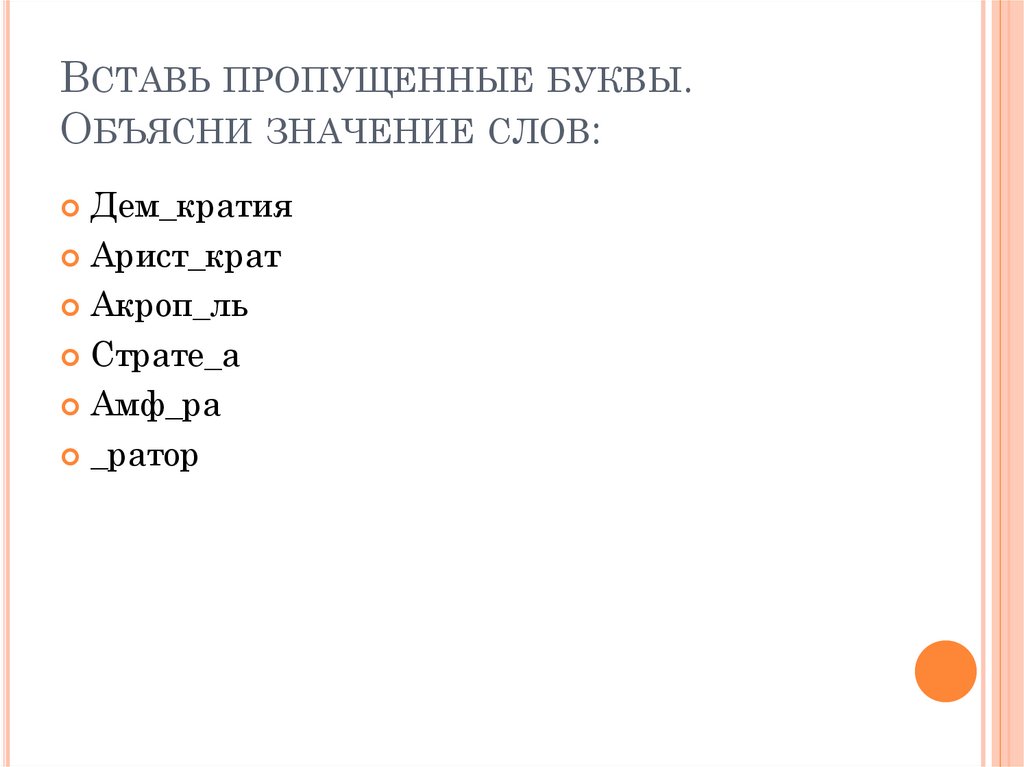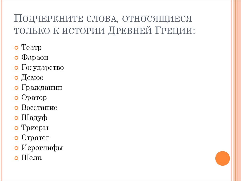 ПОДЧЕРКНИТЕ СЛОВА, ОТНОСЯЩИЕСЯТОЛЬКО К ИСТОРИИ ДРЕВНЕЙ ГРЕЦИИ: