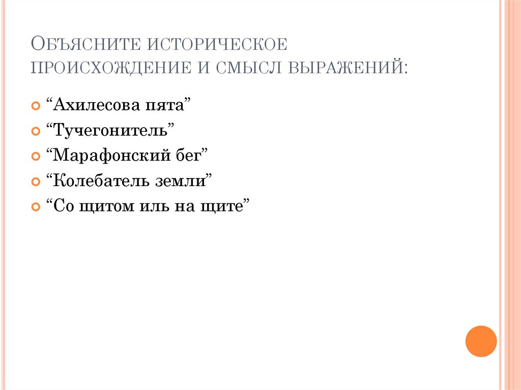 ОБЪЯСНИТЕ ИСТОРИЧЕСКОЕПРОИСХОЖДЕНИЕ И СМЫСЛ ВЫРАЖЕНИЙ: