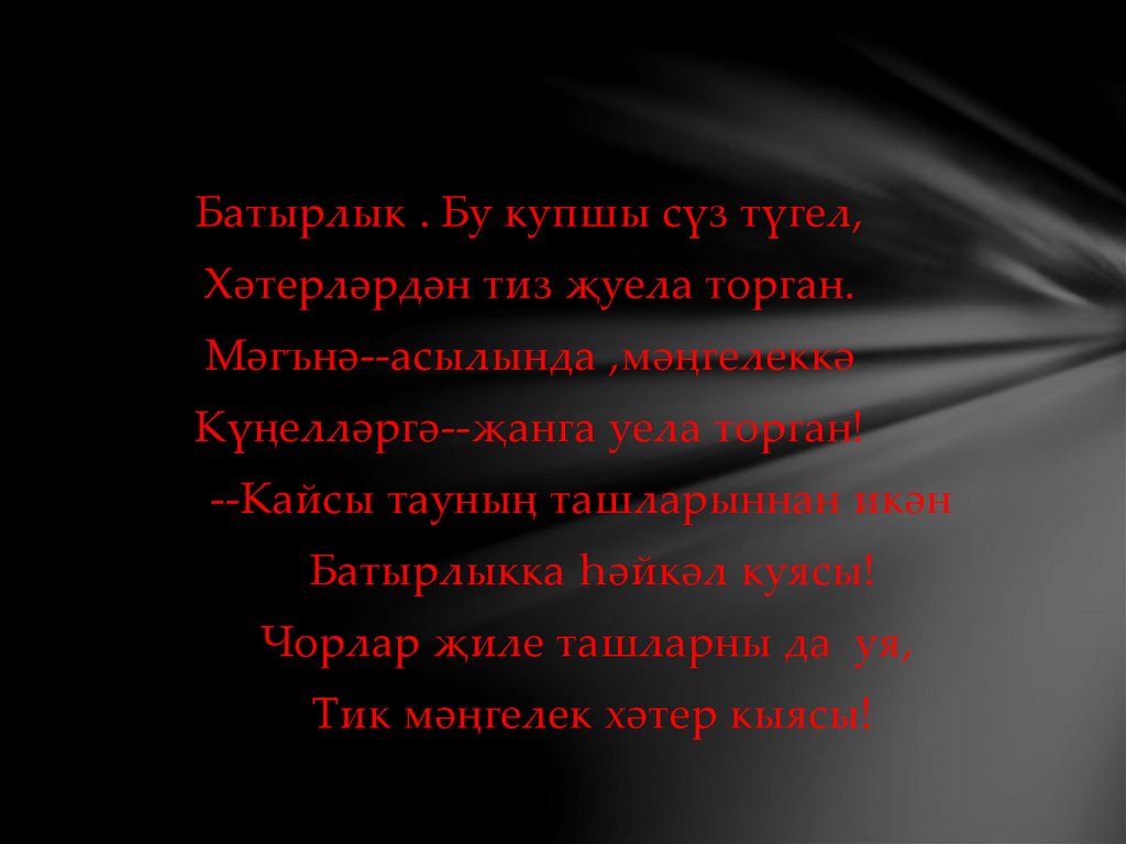 Батырлык . Бу купшы сүз түгел,Хәтерләрдән тиз җуела торган.