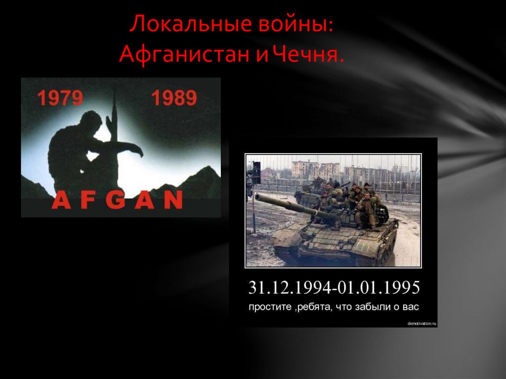 Локальные войны:Афганистан и Чечня.