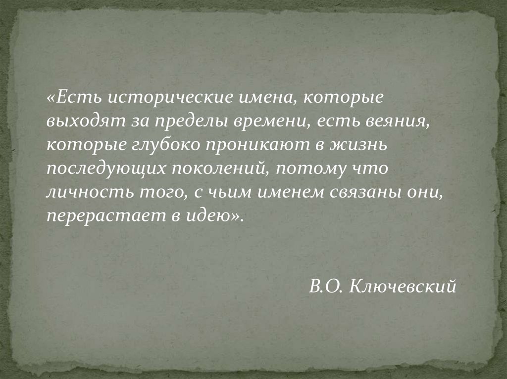 «Есть исторические имена, которыевыходят за пределы времени, есть веяния,