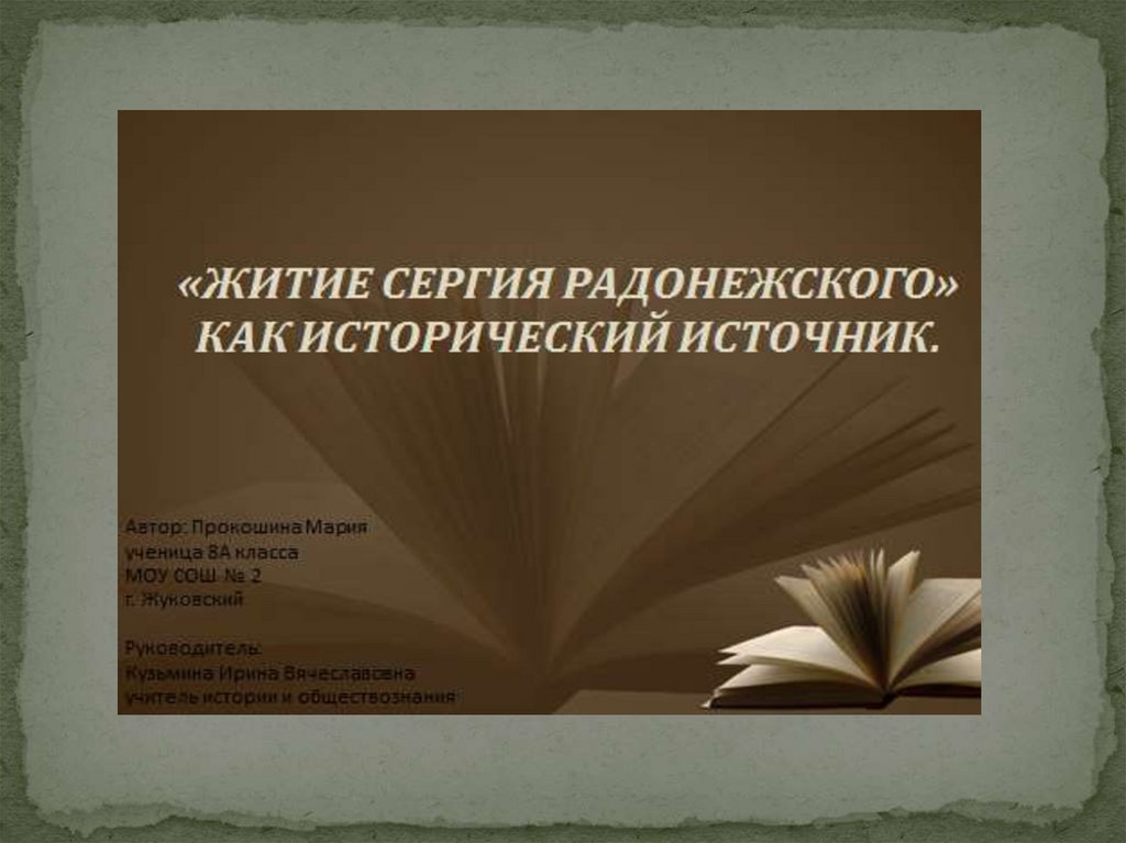 Приобщение современных школьников к духовным поискам Преподобного Сергия Радонежского на уроках истории