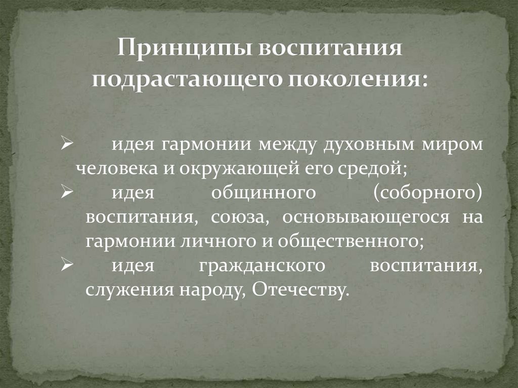 идея гармонии между духовным миромчеловека и окружающей его средой;
