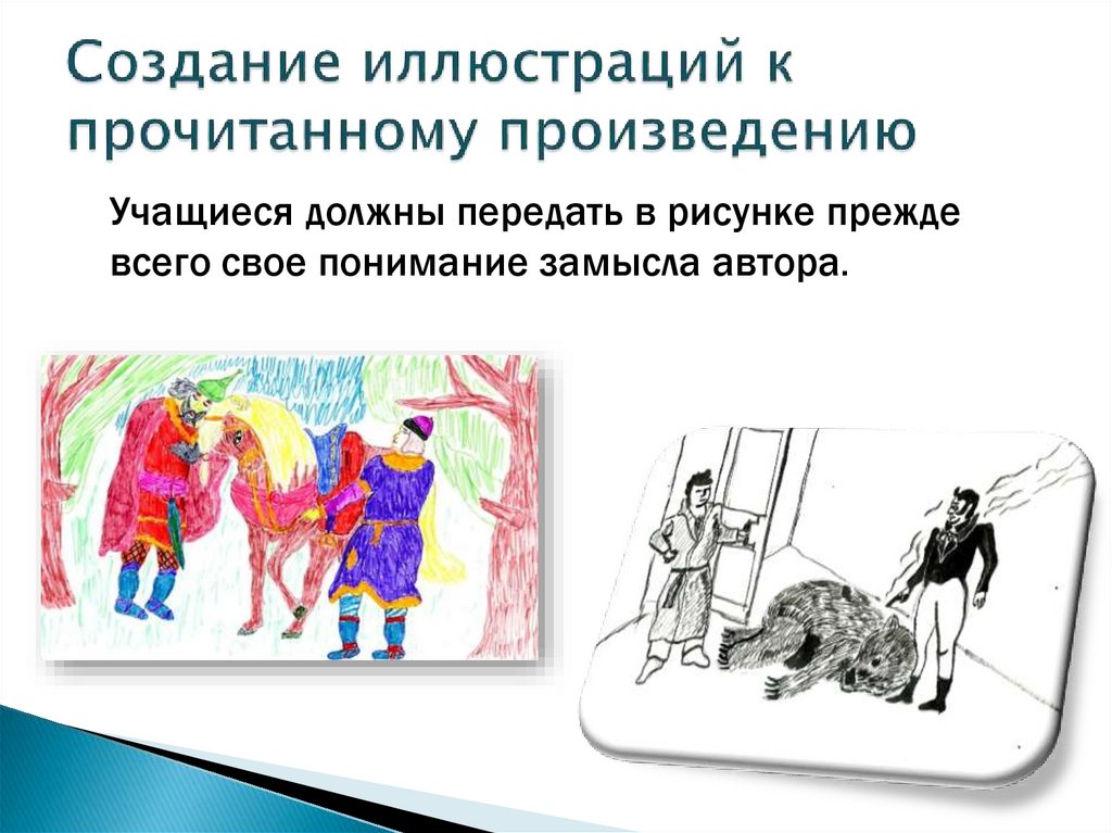 Учащиеся должны передать в рисунке преждевсего свое понимание замысла автора.