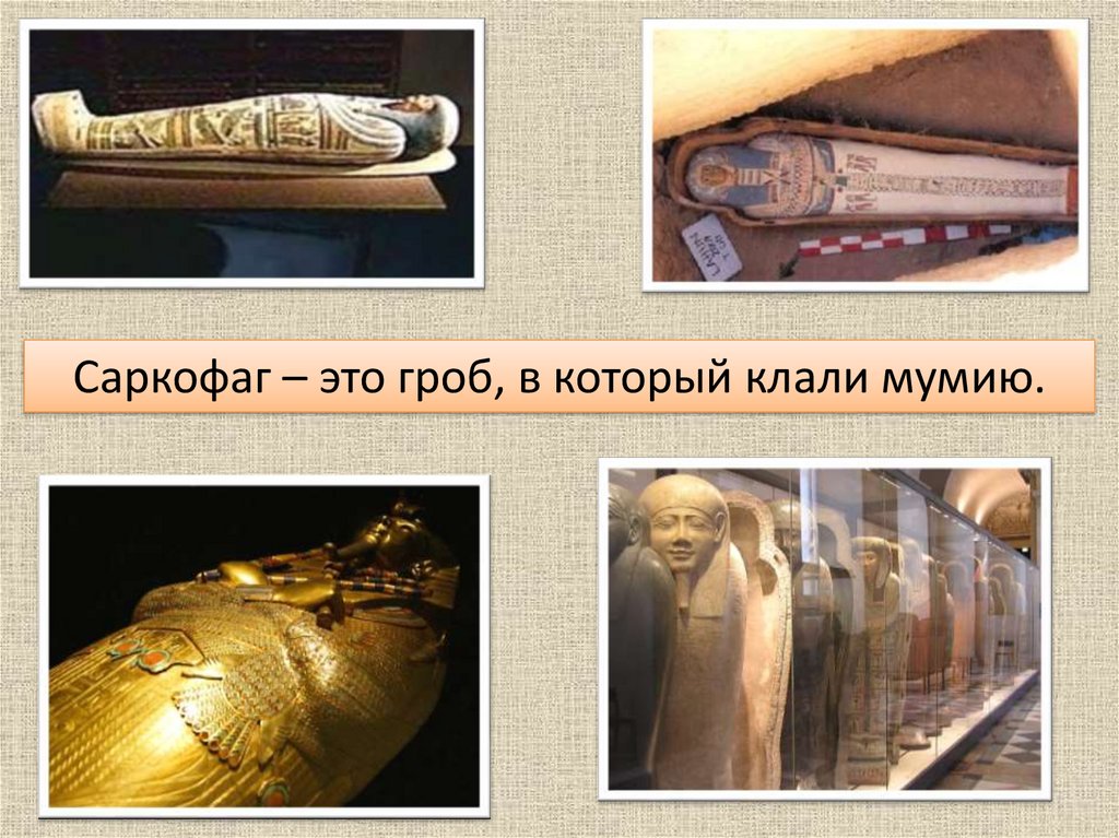 Саркофаг – это гроб, в который клали мумию.9.