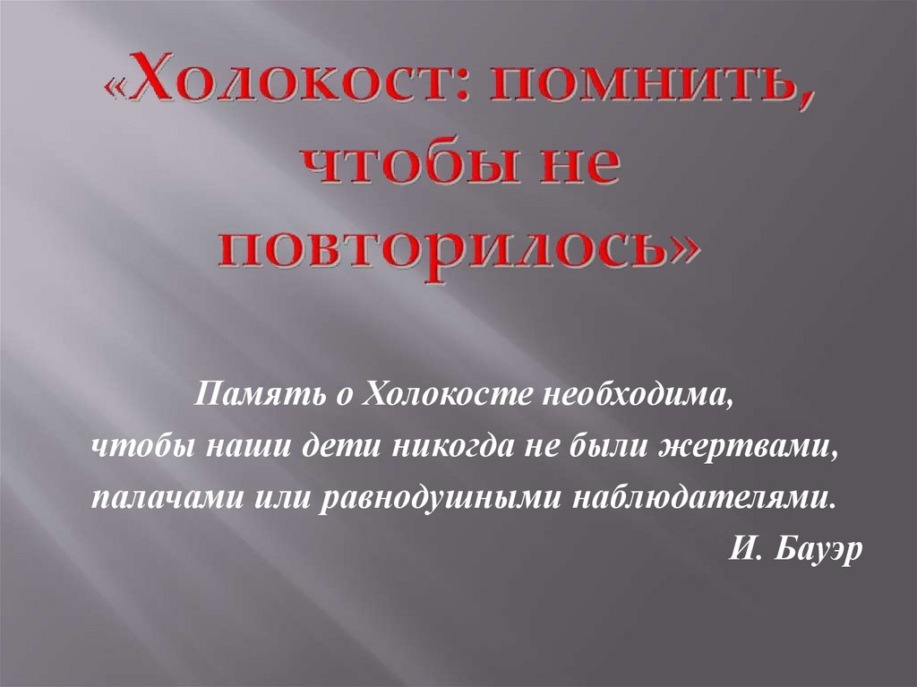Память о Холокосте необходима,чтобы наши дети никогда не были жертвами,