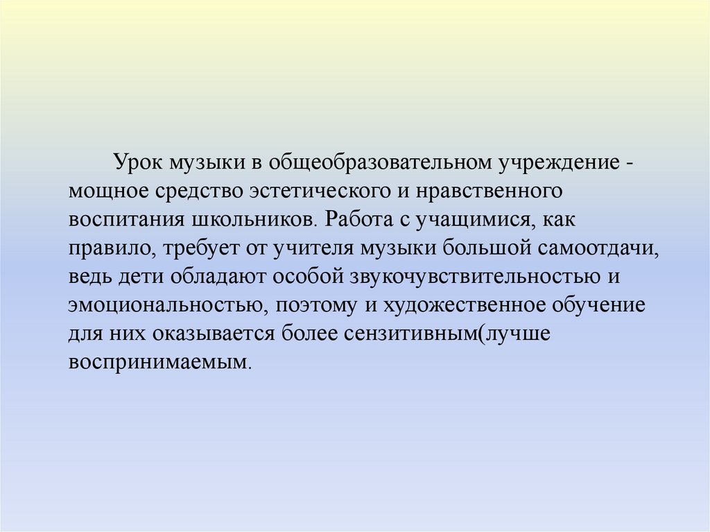 Урок музыки в общеобразовательном учреждение мощное средство эстетического и нравственноговоспитания школьников. Работа с учащимися, как