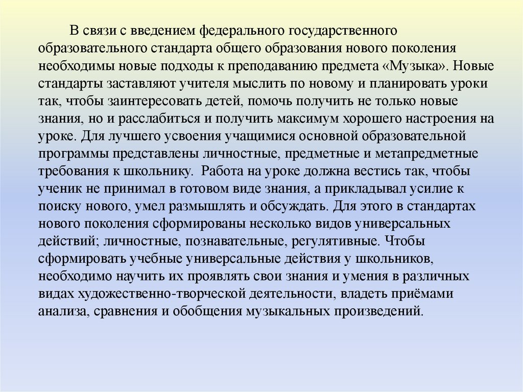 необходимы новые подходы к преподаванию предмета «Музыка». Новые