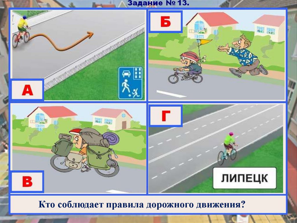 Кто соблюдает правила дорожного движения?26. Задание № 13.