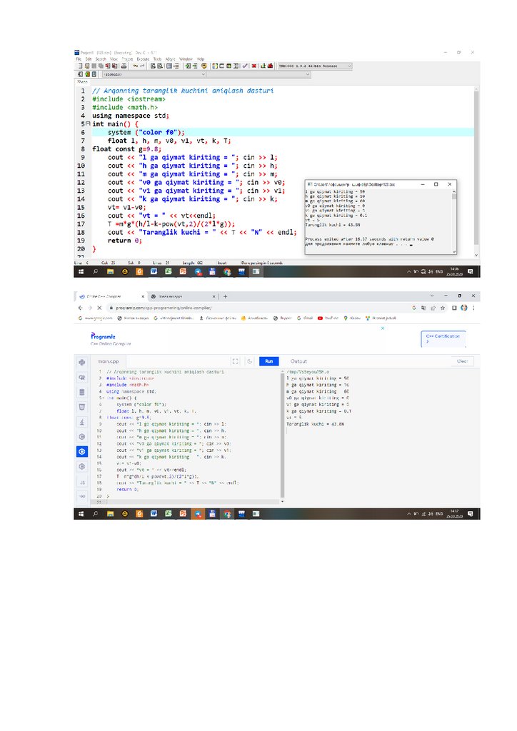 (Dastur kodi)// Arqonning taranglik kuchini aniqlash dasturi
