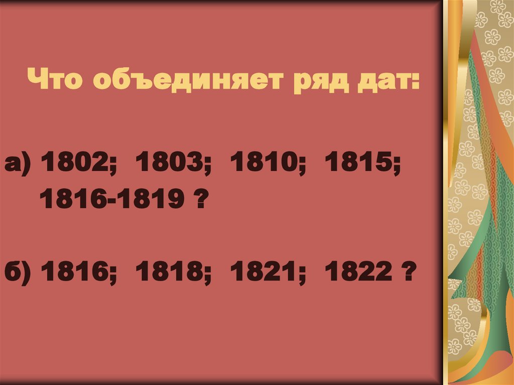 а) 1802; 1803; 1810; 1815;1816-1819 ?
