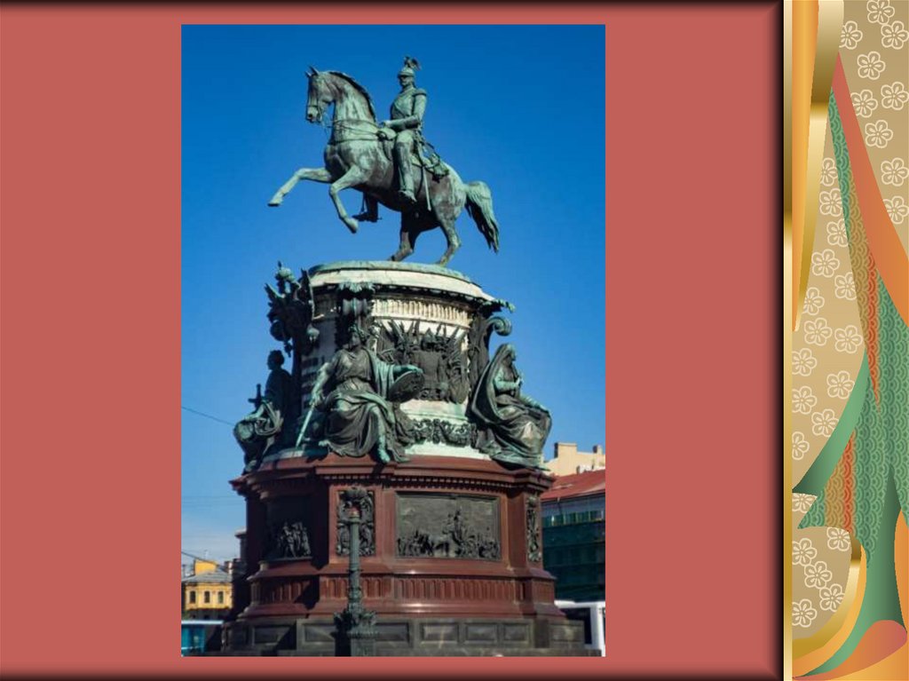 Пьедестал памятника Николаю I,украшен аллегорическими