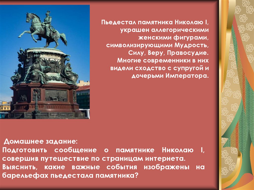 Подготовить сообщение о памятнике Николаю I,