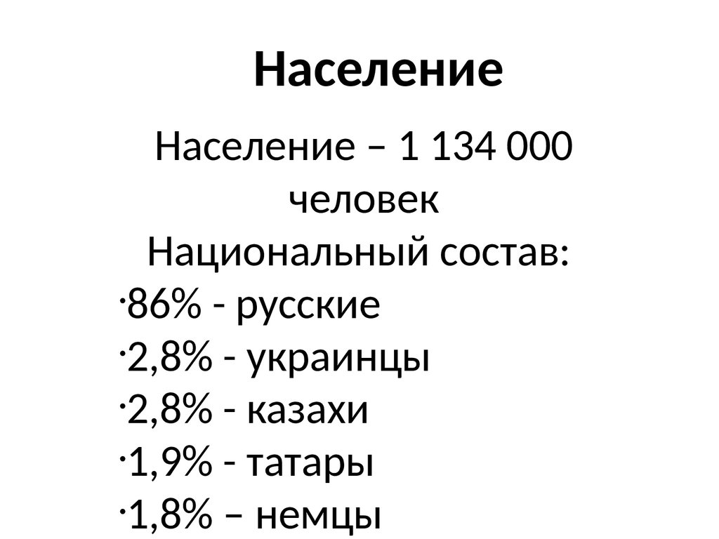 НаселениеНаселение – 1 134 000