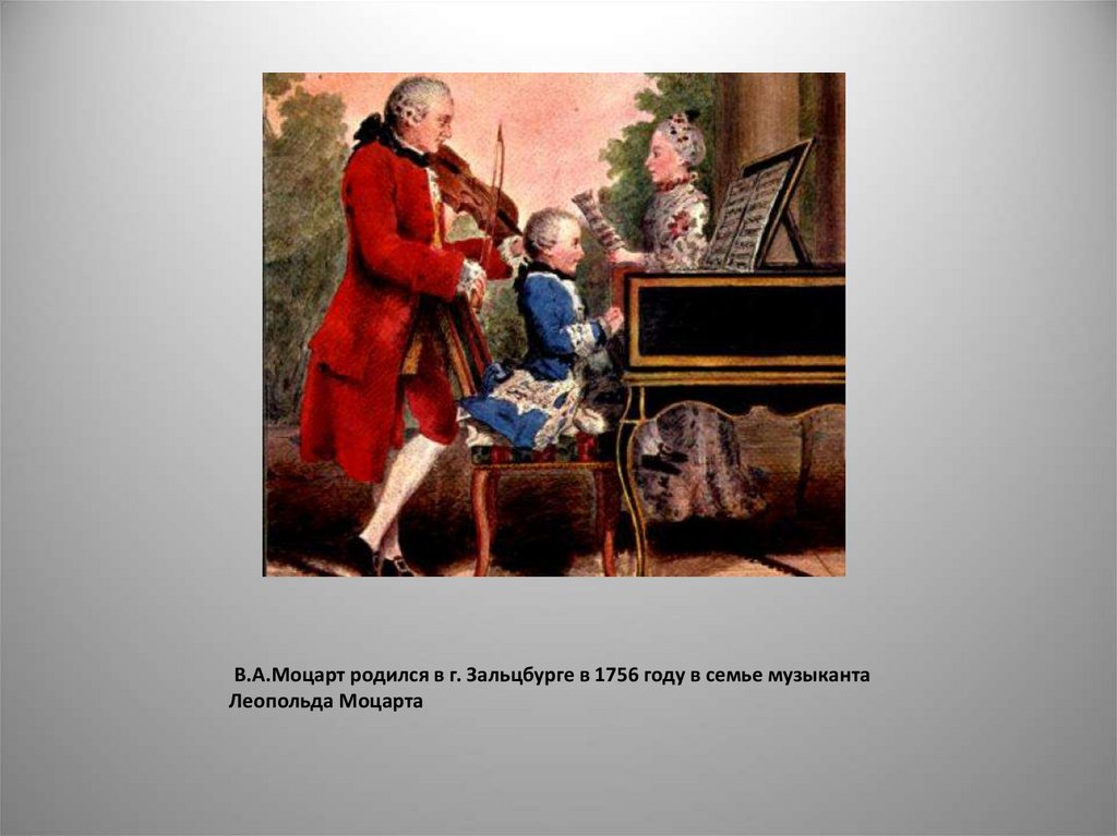 В.А.Моцарт родился в г. Зальцбурге в 1756 году в семье музыкантаЛеопольда Моцарта