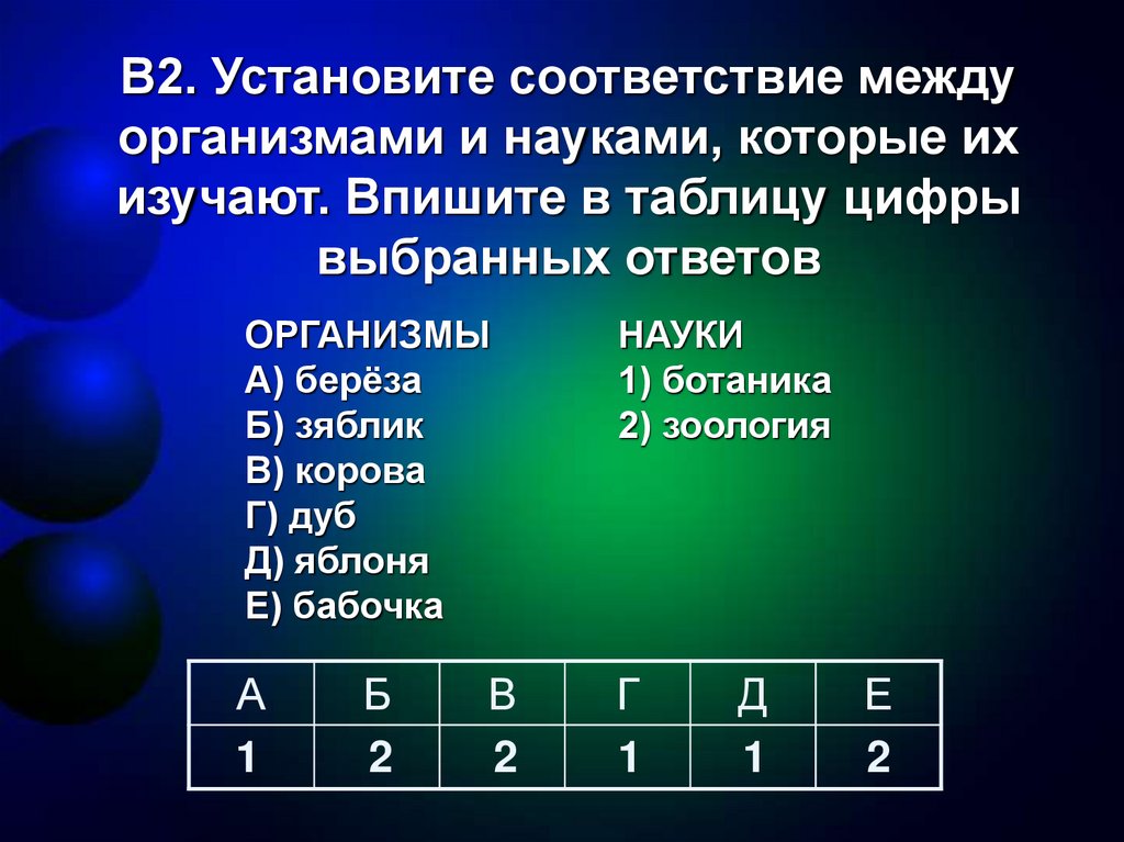 В2. Установите соответствие междуорганизмами и науками, которые их