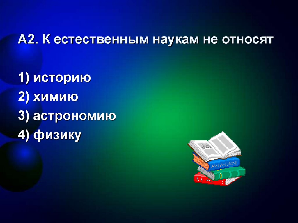 А2. К естественным наукам не относят1) историю