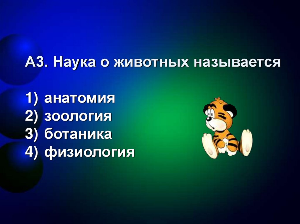 А3. Наука о животных называется1)