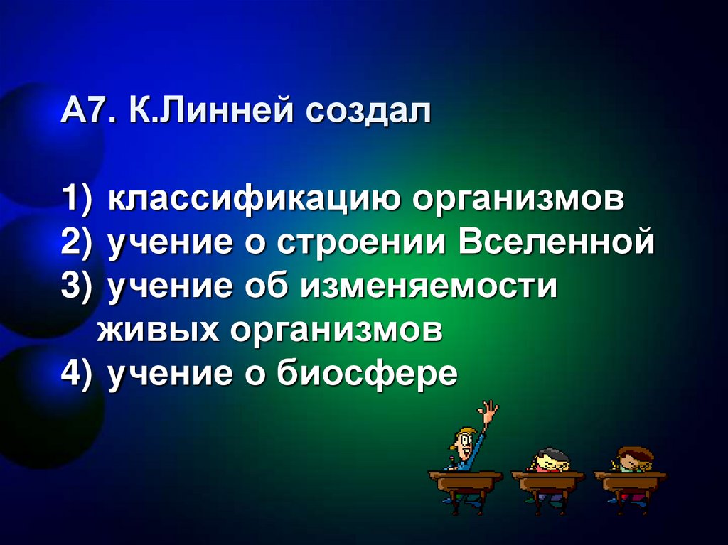 А7. К.Линней создал1) классификацию организмов
