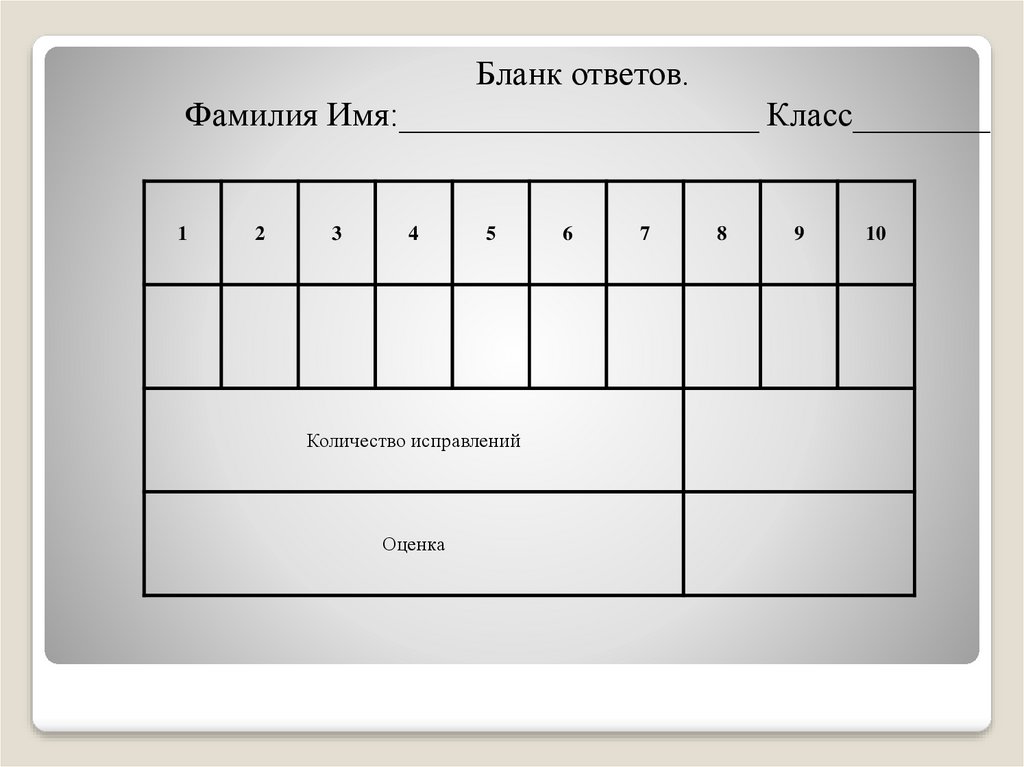 Бланк ответов.Фамилия Имя:_____________________ Класс________