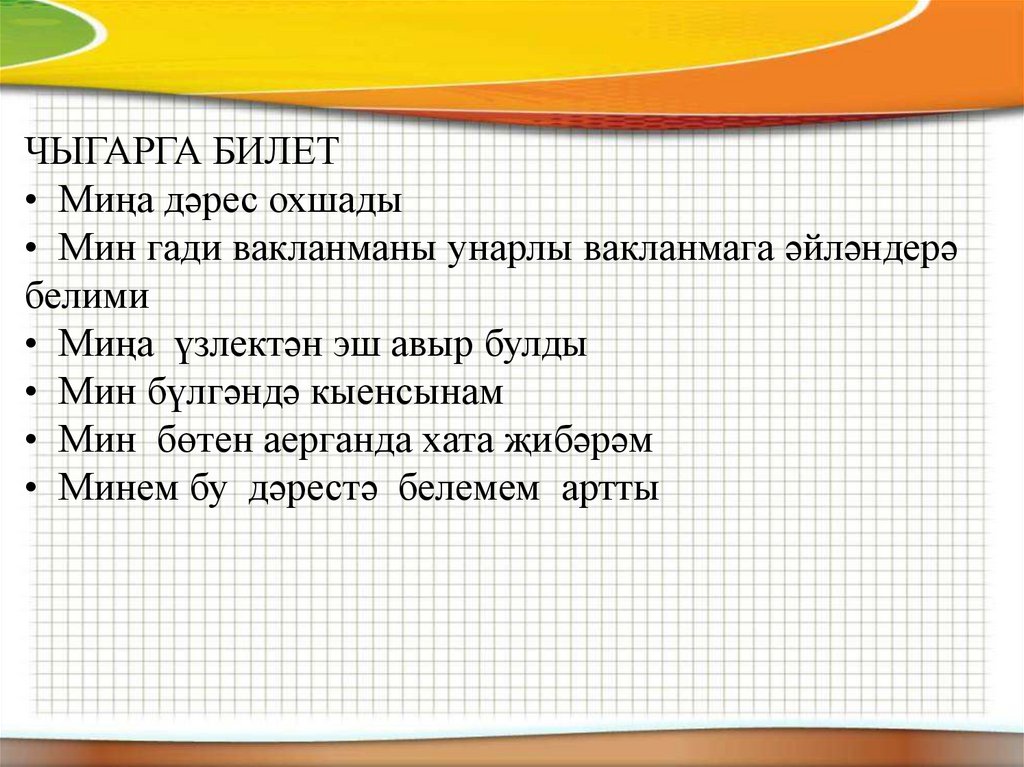 ЧЫГАРГА БИЛЕТ• Миңа дәрес охшады