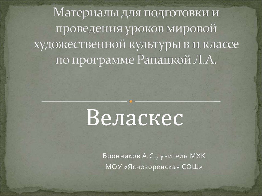 ВеласкесБронников А.С., учитель МХК